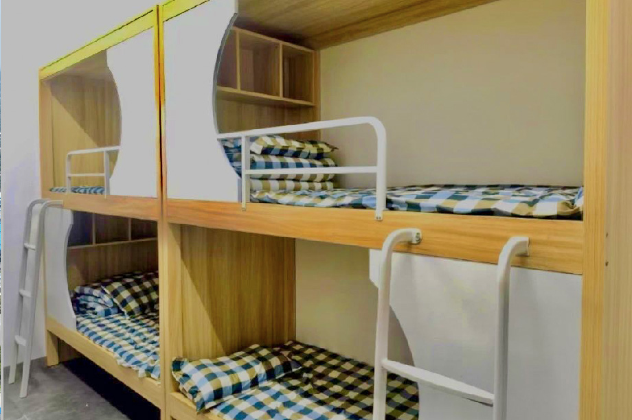 学生公寓:总共4800个床位,配备电梯、卫生间、空调、热水、电扇、实木双层床、实木储物柜等设施,提供8人间、4人间,并为有特殊需求的家长提供单间陪读;