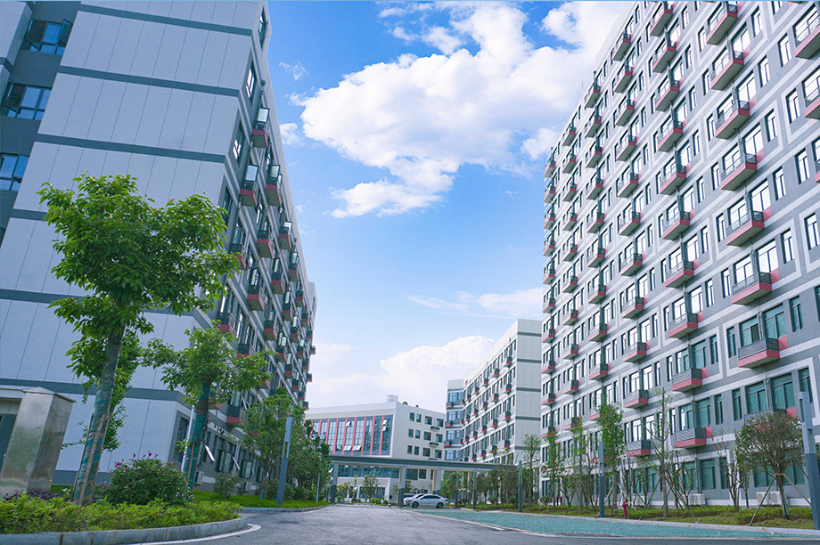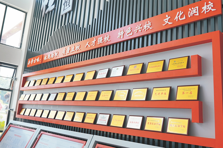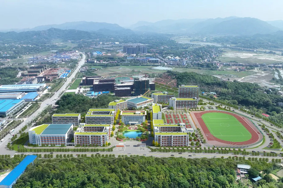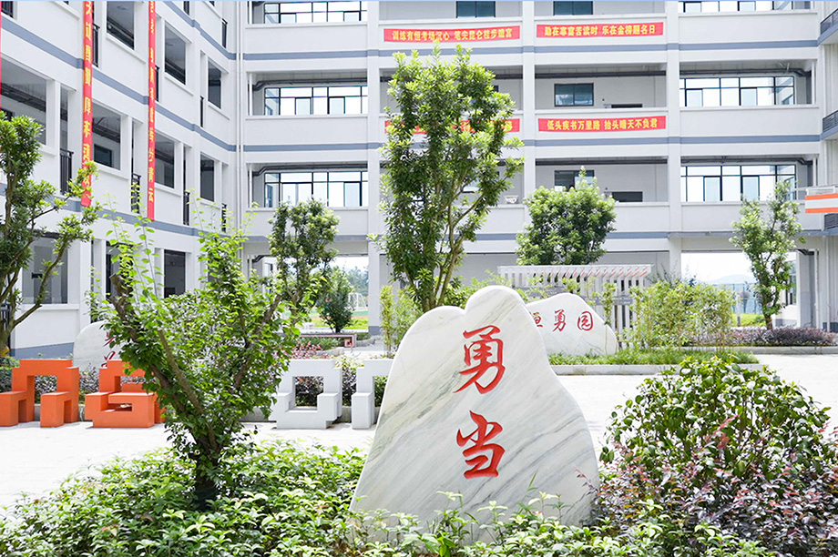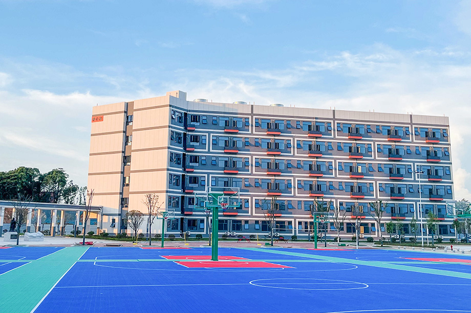 学校每栋楼都有风雨连廊连接,校内不用打伞,不会日晒雨淋,开阔有序的校园环境、漂亮大气的楼栋场馆和先进前沿的设备设施无不展现学校的高端品质。